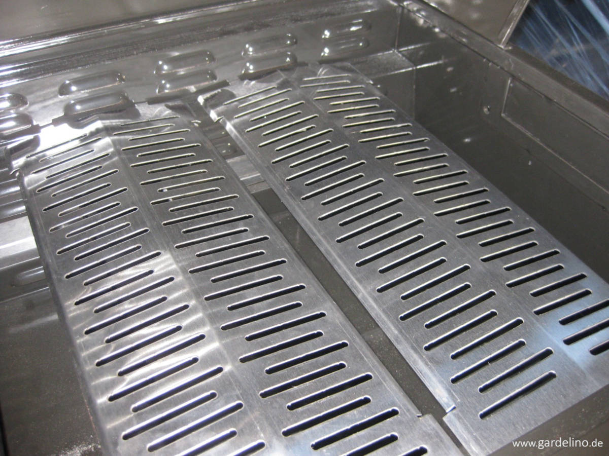 Gasgrills verfügen über eine Fettwanne, um dort Schmutz in einer kleinen Aluschale zu sammeln. Diese kann mit Sand befüllt werden, sodass sich die Fettklumpen leicht entsorgen lassen. Kleine Edelstahl-Roste lassen sich bei Bedarf auch in der Spülmaschine schnell reinigen.